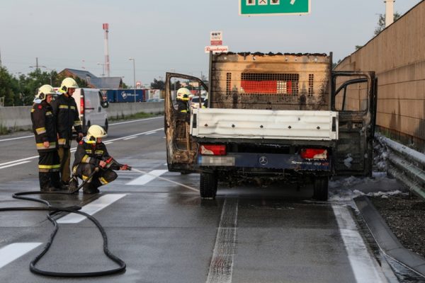 Ein Pritschenwagen stand Donnerstagabend auf der Westautobahn bei Laakirchen in Vollbrand. Zwei Feuerwehren standen bei den Löscharbeiten im Einsatz.