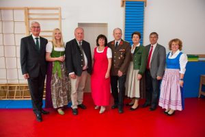 Am Samstag, dem 10. Juni, konnte bei der offiziellen Eröffnung dieser moderne zeitgemäße Neubau gebührend gefeiert werden. Nach der Festmesse, welche Prälat Holzinger in der Feuerwehr-Fahrzeuggarage abhielt, folgte die Hausssegnung, die Ansprachen und die liebevoll einstudierten Vorführungen der Kindergarten- und Krabbelstubenkinder, musikalisch umrahmt vom Musikverein Reindlmühl.