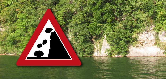 Während die Paddler drei Schritte daneben auf den Uferfelsen in der Sonne saßen, donnerte vor vier Jahren ein Felsbrocken mit einem Meter Durchmesser aus rund 100 Metern auf ihre Boote herab und verfehlte die Wassersportler nur knapp (Bericht aus 2013). Seither schrammte niemand mehr derart knapp an einer Katastrophe vorbei, aber die Gefahr besteht weiterhin.