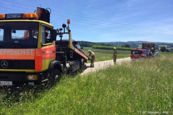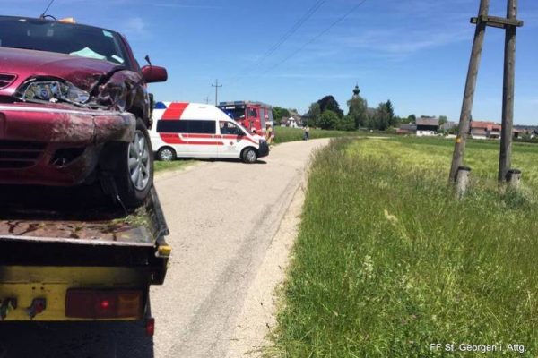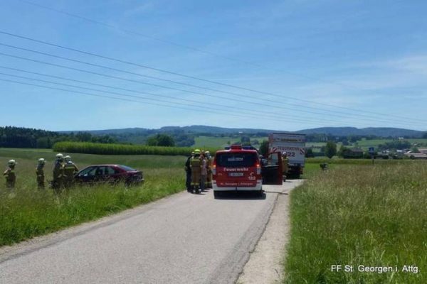 Am 09.06.2017 kurz nach Mittag wurde die FF St. Georgen i. A. von der Polizei zu Aufräumarbeiten nach einem Verkehrsunfall alarmiert. Am Ortsrand von St. Georgen ereignete sich ein Verkehrsunfall mit zwei beteiligten PKW. Seitens der Feuerwehr wurden die auslaufenden Betriebsmittel gebunden und das kontaminierte Erdreich entfernt.