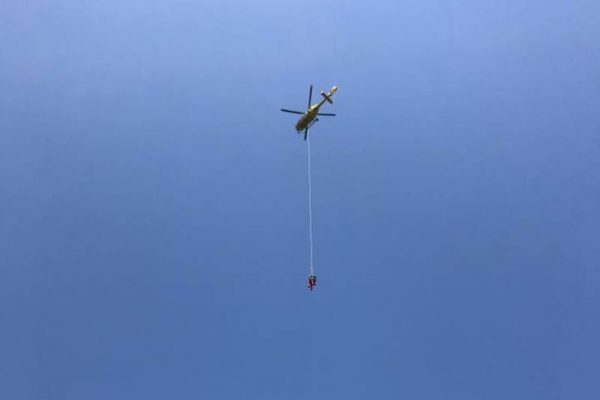 Der Verletzte wurde mit einem Tau am Notarzthubschrauber Christophorus 10 geborgen und anschließend ins Klinikum Wels geflogen. Die Feuerwehren samt Höhenrettergruppe unterstützen die Rettungsaktion.