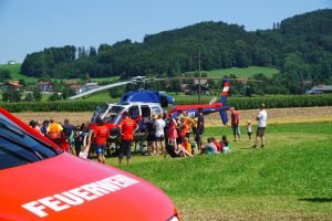 Am zweiten Lagertag wurden die Kids schon wieder von Sonnenstrahlen geweckt und starteten am Vormittag mit der Lagerolympiade, wobei vor allem das Spiel „Betreuer im Regen“ für großes Gelächter sorgte. Ein actionreiches und abwechslungsreiches Nachmittagsprogramm mit einer Hubschraubervorführung des BMI, einer Modellfliegervorführung und einer Trialshow ließ keine Langeweile aufkommen. Zahlreiche Besucher folgten der Einladung zum Elternabend und überzeugten sich selbst von der guten Stimmung im Lager und der hervorragenden Arbeit im Feuerwehrnachwuchs.