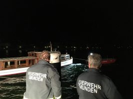Am Sonntag wurden die Kameradinnen und Kameraden der Feuerwehr um 00:10 Uhr zu einer Bootsbergung im Bereich der Schillerlinde alarmiert. Ein Ausflugsschiff hatte sich aus unbekannter Ursache „selbständig“ gemacht und drohte im Bereich der Esplanade gegen die Ufermauer getrieben zu werden. Passanten bemerkten dies, sprangen ins Wasser und sicherten das Boot bis die FF Gmunden mit den Sicherungs- und Bergearbeiten begann. Die Besatzung des Feuerwehr Arbeitsbootes nahm es „an die Leine“ und verhängte es an einem Steg, der Besitzer konnte sein Schiff danach übernehmen.
