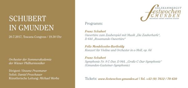 Im Rahmen der Festwochen Gmunden 2017 gastiert das Orchester der Sommerakademie der Wiener Philharmoniker am 20. Juli um 19:30 Uhr im Toscana Congress Gmunden.