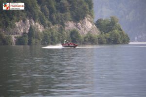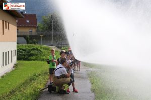 Auch in diesem Jahr standen für die Kinder mehrere Stationen auf dem Programm. Vorm Depot konnten die Kinder ihre Geschicklichkeit beim Zielspritzen mit der Kübelspritze unter Beweis stellen und bauten außerdem eine Löschleitung auf. Im Trauneck wurde mit einer mit Gas befeuerten Anlage ein Brand simuliert und am Traunsee eine Runde mit dem A-Boot gefahren. Natürlich stand auch eine Fahrt mit den Feuerwehrautos am Programm.