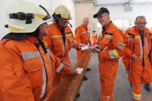 Treue Weggefährten, liebgewonnene Nachbarn und Familienangehörige der Feuerwehrmänner standen zum Abschied Spalier und begleiteten den Fußmarsch. Über 30 Jahre lang waren die Florianis im Feuerwehrhaus in der Schmiedgasse untergebracht, mit der Übersiedelung in die neue, moderne Unterkunft bricht für die FF Bad Goisern nun ein neues Zeitalter an. Die offizielle Eröffnung mit einem „Tag der offenen Tür“ im Sicherheitszentrum folgt dann am 30. September.