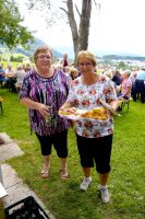 Ein strahlender Vorsitzender Kurt Viertbauer mit seinem Helferteam hatten alle Hände voll zu tun, um den Ansturm auf Essen und Trinken zu schaffen. Die Grillhenderl, Kotelett und Bratwürstel fanden reißenden Absatz und auch das reichhaltige Salat,- und Kuchenbuffet, dass fleißige Mitglieder zubereitet hatten, war im Nu in den Mägen der Gäste verschwunden.