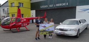 Ihr Gewinn: Abholung von zuhause per Strechlimo, Hubschrauberflug von Gschwandt nach Windern, Dinner im Gasthaus Übleis, anschließend Eintritt und Getränke am Event.