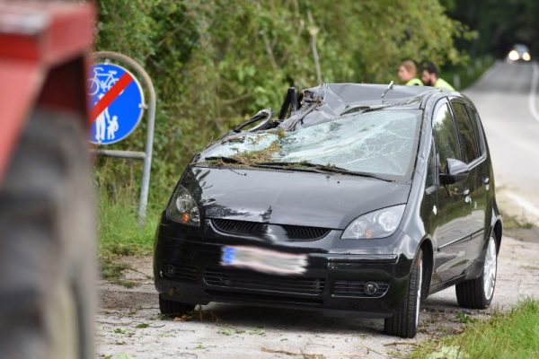 Baum krachte mit voller Wucht auf vorbeifahrendes Auto