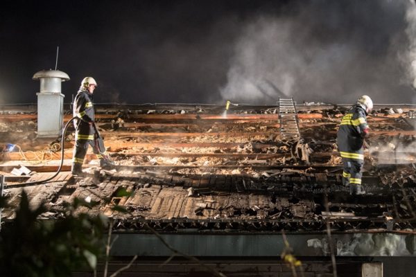 „An der Einsatzstelle war der Brand am Dach unter den Welleternitplatten nicht leicht zu lokalisieren – mit Hilfe einer Wärmebildkamera konnten wir die Brandherde ausmachen und ablöschen“, so Einsatzleiter Matthias Döllerer im Interview.