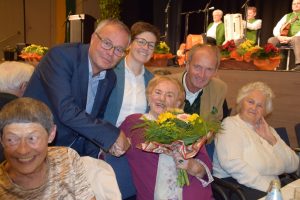 Zum Auftakt hielten Vizebürgermeister Mag. Christoph Rill und Bürgermeister Brunsteiner die Gäste über die neuesten Entwicklungen in der Bezirksstadt auf dem Laufenden. Der ältesten anwesenden Seniorin, Frau Katharina Lattmanig mit 93 Jahren, gratulierte das Stadtoberhaupt mit einem Blumenstrauß. Alfred Weinzinger mit 100 Jahren ist der älteste Vöcklabrucker. Nicht nur von Bürgermeister Mag. Brunsteiner und vom Seniorenbund-Obmann Mag. Herbert Weißenbacher wurde Herr Weinzinger herzlich willkommen geheißen – auch Alt-Landeshauptmann Dr. Josef Pühringer kam zur Feier und beglückwünschte den Stadtältesten.