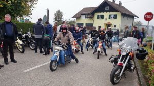 Bereits zum 6. mal fand am 30. September 2017 die Attersee-Rundfahrt der Maurerbockfreunde Vöcklabruck statt. 470 Teilnehmer aus mehreren Ländern trafen sich ab 7:00 Uhr bei der Atterseehalle in Attersee am Attersee. Anfangs trübte der Nebel noch etwas die Sicht und auch die Temperaturen um den See waren für die Zweiradfahrer noch etwas kühl. Jedoch schon bald verzogen sich die Nebelschwaden und ein herrlicher Sonnentag erfreute die vielen Oldtimerfreunde. Da am Nachmittag die Straßen um den Attersee für das Radrennen (King of the Lake) gesperrt wurden, musste diesmal bereits um 9:30 Uhr gestartet werden. Dabei machten die 60 Motorräder den Anfang, da diese Fahrzeuge eine größere Reisegeschwindigkeit aufweisen. Anschließend folgten über 400 Moped’s dem „Geruch“ der Motorräder.