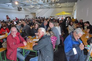Am Parkplatz der Pizzeria „Sigis-Pup“ gab es wieder einen Verpflegungsstop mit zahlreichen, interessanten Fachgesprächen. Aber auch dieser Aufenthalt wurde diesmal eher kurz gehalten, um die Straßen frühzeitig für das Radrennen frei zu machen. Nach rund 50 Kilometern trafen die Oldtimerliebhaber mit ihren geliebten Fahrzeugen wieder bei der Atterseehalle ein. Die vielen freiwilligen Helferinnen und Helfer versorgten die PUCH-Liebhaber sehr rasch mit Speisen und Getränken. Nachdem die Fahrer wieder gestärkt waren gab es zahlreiche Ehrungen für die Teilnehmer.