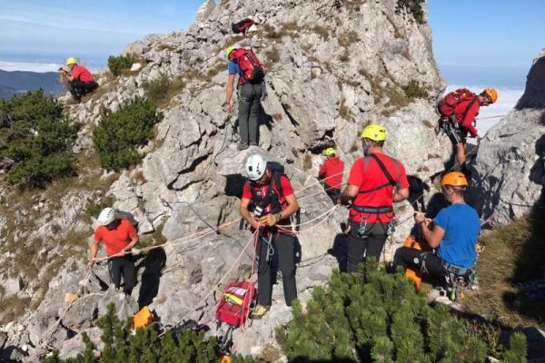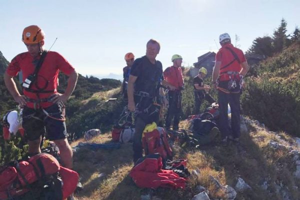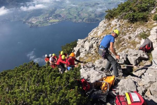 Vergangenen Samstag fand am Traunstein die Sommerabschlussübung der Bergrettung Gmunden statt. Übungsannahme war ein Sturz ins Seil zweier Kletterer im sogenannten Pauli-Kamin.
