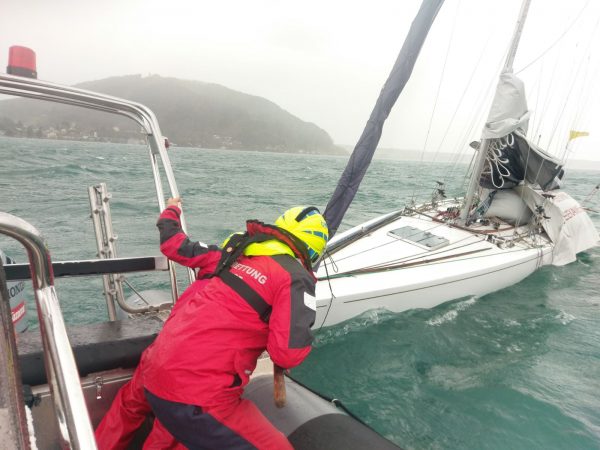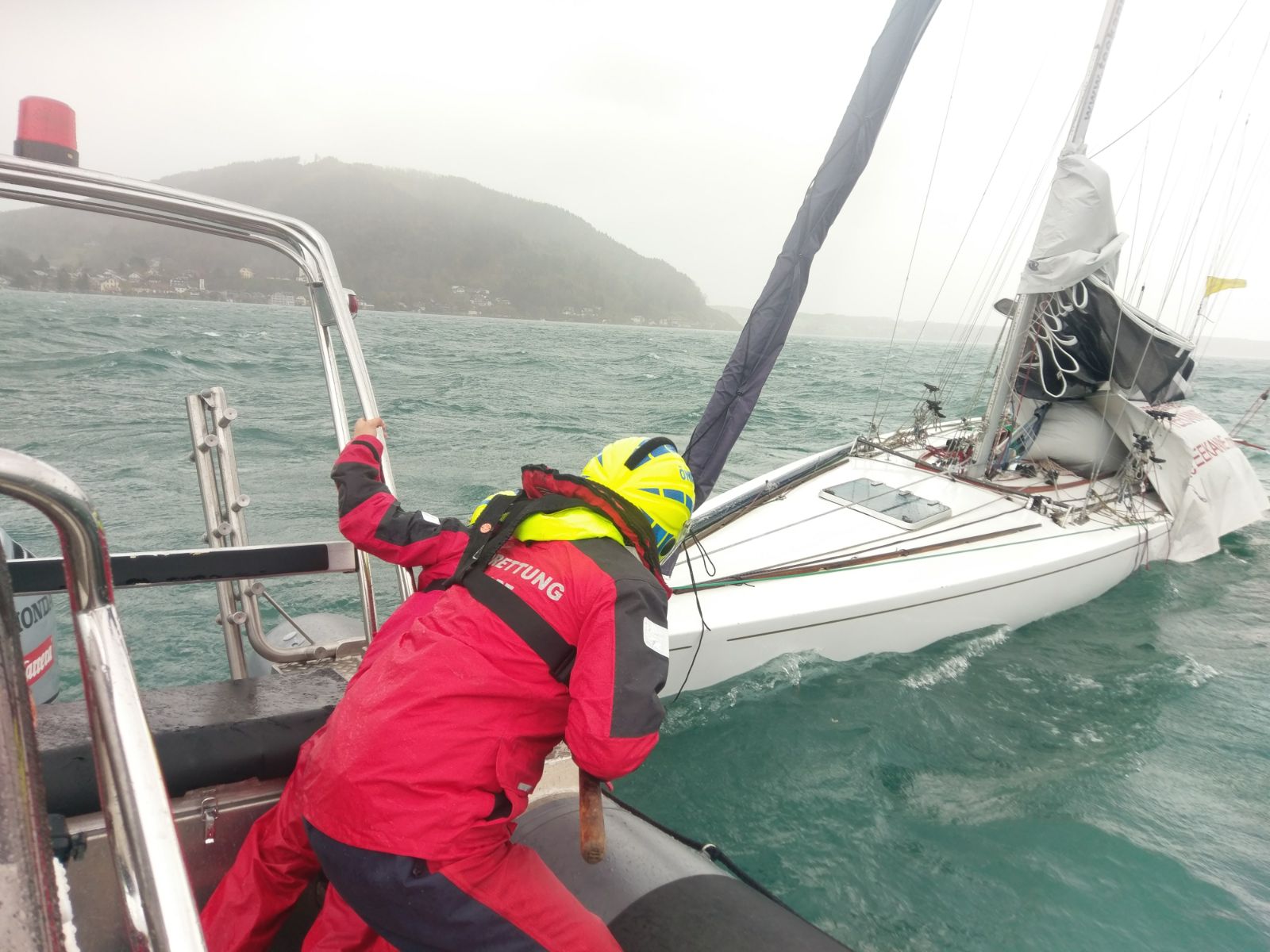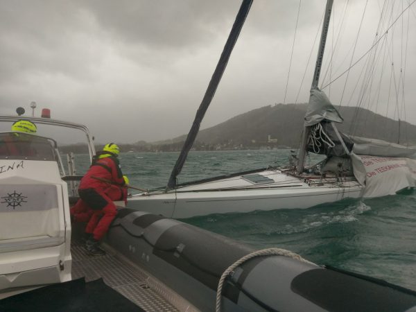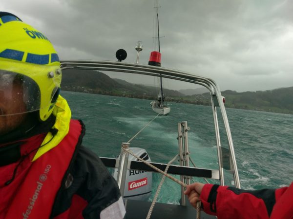 Der heutige Sturm hat auch am Attersee seine Spuren hinterlassen. Die Österreichische Wasserrettung war mehrmals im Einsatz um losgerissene Boote zu bergen. Fotos: ÖWR