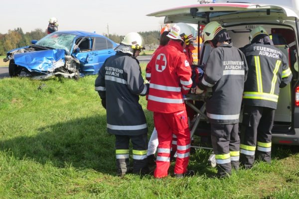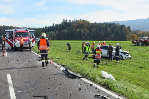 Ein 18-Jähriger aus Nussdorf am Attersee fuhr um 12 Uhr mit seinem Pkw auf der L1265 Richtung Schörfling. Kurz nach der Ortschaft Grafenbuch kam es aus ungeklärter Ursache zum Frontalzusammenstoß mit dem entgegenkommenden Pkw, gelenkt von einer 28-Jährigen aus Ottnang. Die Frau wurde im Pkw eingeklemmt und musste von der Feuerwehr aus dem Fahrzeug mit der Bergeschere befreit werden. Beide Lenker erlitten Verletzungen unbestimmten Grades und wurden ins LKH Vöcklabruck eingeliefert. An beiden Fahrzeugen entstand Totalschaden, berichtet die Polizei. Fotos: FF Aurach