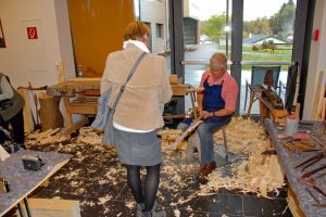 Mehrere handwerkliche Tätigkeiten wurden in der Praxis vorgeführt und konnten auch von den Besuchern selbst ausprobiert werden. So zum Beispiel das Schindelklausen und ausputzen mit dem Roafmesser (Zugmesser). Aus Eschenholz konnten Rechenzähne gespalten und angespitzt werden. Auch auf der Hoazlbank und der Hobelbank durfte man verschiedenste Gerätschaften ausprobieren. Ein junger Besucher war so begeistert, das er fast 3 Stunden bei der Ausstellung blieb und einen kompletten Hackenstiel anfertigte. Leicht verschwitzt aber sehr stolz nahm er sein „Meisterstück“ mit nach Hause.