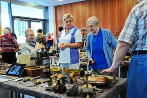 Am Beginn der Idee – diese Ausstellung zu organisieren – stand ein besonderer Gedanke. Man könnte doch auch bei demenzkranken Bewohnern – mit alten Gerätschaften – Jahrzehnte lange schlummernde Gedanken wieder wecken. Menschen mit Demenz haben ganz besondere Ressourcen – diese wurden an diesem Tag mit vielen Exponaten wieder aktiviert. Das Pflegepersonal begleitete die Bewohner durch die Ausstellung und war aber auch selbst sehr interessiert.
