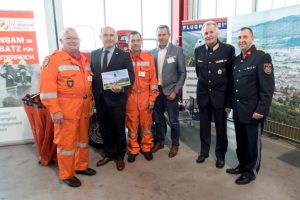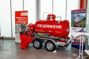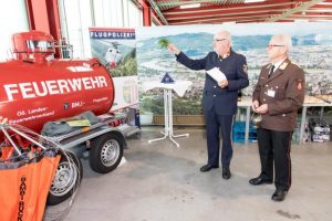 Auf Einladung der Flugeinsatzstelle Linz waren Stützpunktleiter Brandrat Christian Huemer, Feuerwehrkommandant Hauptbrandinspektor Ing. Florian Huemer und Brandinspektor Karl Sternberger bei der Segnung der neuen Flugeinsatzstelle Linz am Flughafen Linz eingeladen. Zahlreiche Ehrengäste, unter ihnen Innenminister Mag Wolfgang Sobotka, Landespolizeidirektor Andreas Pils B.A. M.A, Abteilungsleiter der Flugpolizei Ministerialrat Mag. Werner Senn, Landesfeuerwehrkommandant Dr. Wolfgang Kronsteiner, Bezirksfeuerwehrkommandant Stefan Schiendorfer, Bürgermeister der Marktgemeinde Scharnstein LAbg. Rudolf Raffelsberger, die Flughafenleitung und die Einsatzpiloten der Flugeinsatzdienststelle, nahmen am offiziellen Festakt teil. Bei den Interviews und Ansprachen wurde die positive Zusammenarbeit der befreundeten Blaulichtorganisationen positiv hervorgehoben und die Installierung der mobilen Tankstelle für die Flugpolizei als Erhöhung der Sicherheit und Einsatzzeit in Oberösterreich begrüßt. Auch die Stationierung eines 500 Liter mobilen Löschbehälters, „Bumbi Bucket“ ermöglicht der Flugpolizei, die Feuerwehren bei Waldbränden aus der Luft unterstützen zu können. Im Anschluss konnten die neuen Räumlichkeiten und Gerätschaften besichtigt werden.