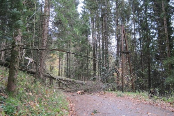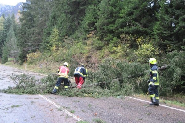 Stark betroffen davon war die B145 zwischen St. Agatha und Pötschenhöhe. Hier war die Fahrbahn immer wieder durch umgestürzte Bäume blockiert welche von den Einsatzkräften mit Motorsäge oder Kran entfernt werden mussten. Auch abgebrochene Baumteile die auf Hausdächer zu stürzen drohten oder Bäume welche in Stromleitungen hingen und beschädigten beschäftigten die Helfer. Gegen Abend legte sich der heftige Sturm, die Situation beruhigte sich und die Einsätze konnten beendet werden. Insgesamt stand die FF St. Agatha mit 40 Mann und 6 Fahrzeugen im Einsatz.
