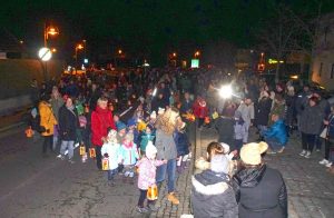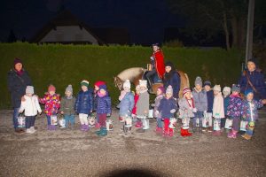 Der Laternenumzug setzte sich pünktlich um 17:00 Uhr vom Kindergarten Gschwandt in Richtung Gemeindezentrum in Bewegung. Voran der heilige Martin hoch zu Ross. Mama`s, Papa`s, Oma`s, Opa`s, Nachbarn und Bekannte säumten die Straße und bestaunten die tollen Laternen und den Gesang der unzähligen Kid`s, die mit den Tanten vollen Inbrunst „ich gehe mit meiner Laterne“ trällerten.