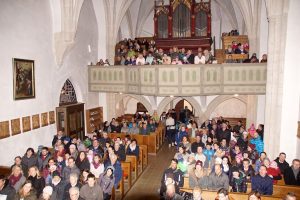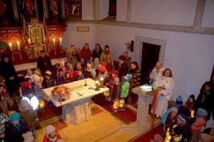 Der Festzug bewegte sich samt Zuschauer dann in die Pfarrkirche Gschwandt, wo schon Pfarrer Alois Kainberger und Pfarrmoderatorin Anna-Maria Marschner warteten. Die Kindergartenkinder samt Tanten durften rund um den Altar Platz nehmen und die Kirche war bis auf den letzten Platz gefüllt. Unter Musikbegleitung von Kindergartenleiterin Monika Weismann wurden dann nochmals alle Lieder über den heiligen Martin gesungen und dies wurde am Ende auch von allen mit tosendem Applaus gewürdigt.