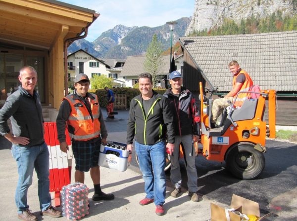 Vizebürgermeister Bernhard Moser und Bürgermeister Egon Höll bedanken sich bei der bauausführenden Firma und den Bauhofmitarbeitern