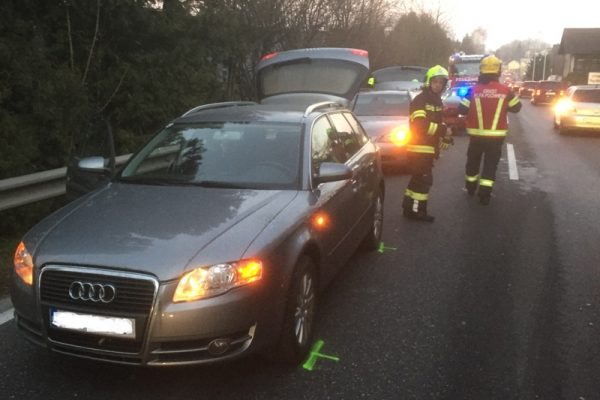 Kurz nach 16.00 Uhr des 07.12.2017 wurden die Einsatzkräfte der Feuerwehr Puchheim zu einem Verkehrsunfall auf die Bundesstraße, Fahrrichtung Vöcklabruck alarmiert. Aus bisher unbekannter Ursache kam es zu einem Auffahrunfall mit drei beteiligten Fahrzeugen.