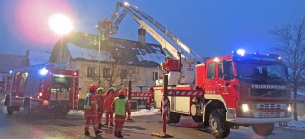 In dem Wohnhaus im Ortszentrum hatten sich Ablagerungen im Rauchfang entzündet, Flammen und ein Funkenregen aus dem Kamin sorgten schließlich für die Alarmierung der Feuerwehr. Seitens der Einsatzkräfte wurde im Haus die Umgebung des Rauchfanges unter anderem mit der Wärmebildkamera auf Hitzeabstrahlung kontrolliert. Vor dem Haus ging währenddessen der Hubsteiger in Stellung und ein Brandschutz mittels Hochdruckrohr wurde aufgebaut.