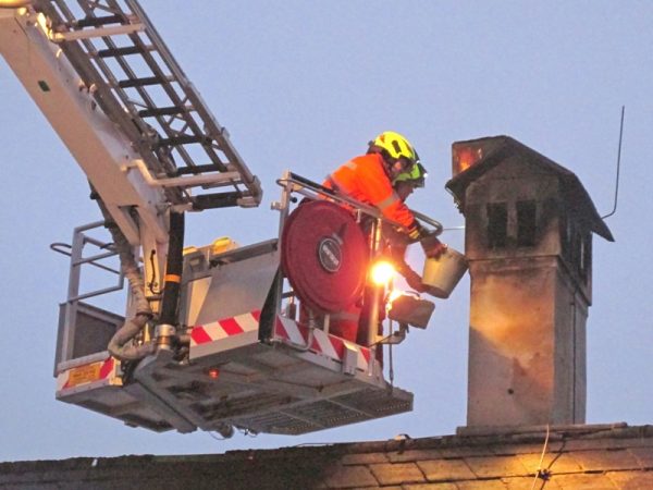 Vom Korb des Hubsteigers aus entfernten die Feuerwehrmänner dann mittels Kehrwerkzeug einen Teil des Glutstockes im Kamin. Den Rest erledigte dann der ebenfalls herbeigerufene Rauchfangkehrer. Seitens der FF Bad Goisern waren 26 Mann (inkl. Bereitschaft) mit dem Kommandofahrzeug, SLF und Hubsteiger im Einsatz.