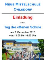 Am 7.12.2017 findet der Tag der offenen Schule an der NMS Ohlsdorf statt. Von 13 bis 16 Uhr können sich Interessierte ein Bild von der Schule und ihren Schwerpunkten machen. Verschiedenste Programmpunkte laden zum Mitmachen oder Zusehen ein.