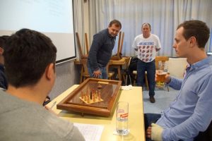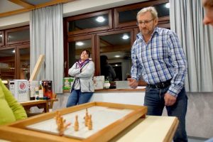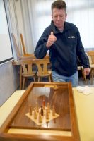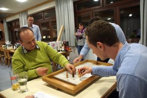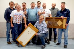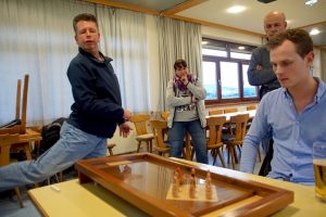 Um 19:00 Uhr dann das große Finale der besten 10 Einzelkegler der Vorrunden. Und da ging es nochmals ordentlich zur Sache. 10 Durchgänge zu je drei „Würfe“ verlangte den Sportlern und Tischrichtern alles ab. Mit den unmöglichsten Verrenkungen versuchten die Kegler den Kreisel zu lenken. Der folgte aber jener Drehung, der ihm mitgegeben wurde.