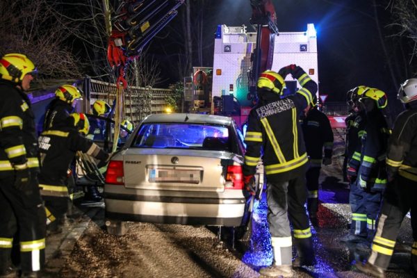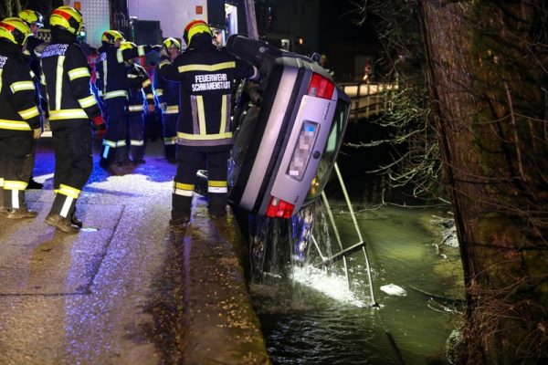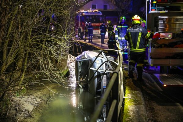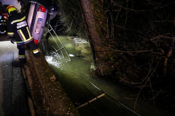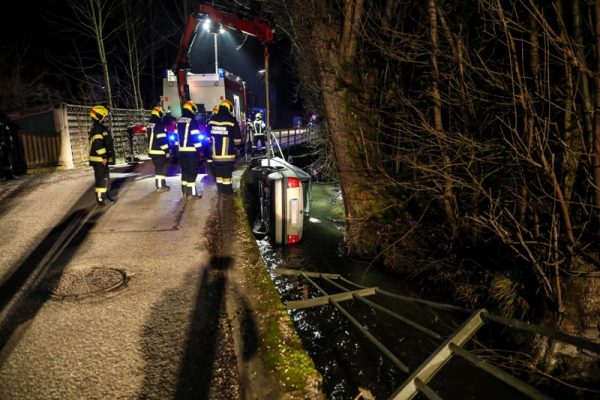 In Schlatt (Bezirk Vöcklabruck) ist Samstagfrüh ein Auto bei einem Unfall in einen Bach gestürzt. Der Lenker konnte sich selbst aus dem Fahrzeug befreien.