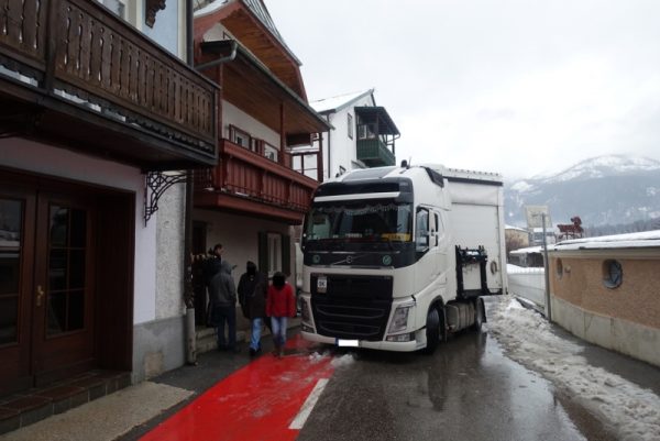 Da auch die stark befahrene Esplanade während des Einsatzes gänzlich gesperrt war, gab es in der Ischler Innenstadt ein regelrechtes Verkehrschaos. Der Sattelzug wurde von den Kameraden der HFW Bad Ischl aus dem Stadtgebiet gelotst. Immer wieder waren kurzzeitige Straßensperren notwendig, um den Sattelzug aus der Innenstadt zu lotsen.