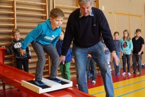 Zum ersten Mal an einer Schule fand der erlebnisreiche Schisprung-Aktionstag gemeinsam mit dem Nordic Schiteam Salzkammergut statt. Organisiert von Dr. Gudrun Kleinrath und Trainer Daniel Keil, mit Unterstützung von Herrn Grieshofer schnupperten die Kinder „Schisprungluft“. Zwar nicht direkt auf der Schanze, dafür aber auf einem Art Schisprungsimulator in der Turnhalle.