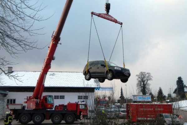 Schwieriger gestaltete sich dann die Fahrzeugbergung. Ein Herausziehen mit der Seilwinde war wegen des Betonschachtes nicht möglich und der Kran des Schweren Rüstfahrzeuges war dem Gewicht des SUV nicht gewachsen. Mit dem angeforderten 55-Tonnen-Kranfahrzeug der Feuerwehr Vöcklabruck war die Bergung dann „fast ein Kinderspiel“. Die Lenkerin überstand das Malheur – außer einem gehörigen Schreck – unverletzt.