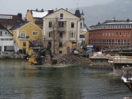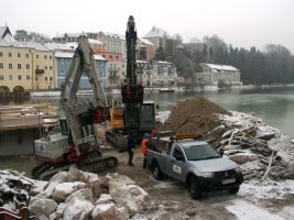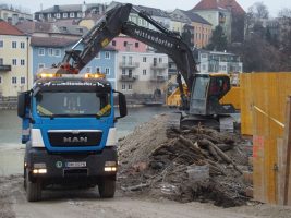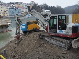 Zum letzten Mal gaben sich die Bagger auf der Schüttung ein Stelldichein und sorgten für den Rückbau und Abtransport des Materials. Ab nächster Woche gibt es wieder Abwechslung: Dann wird mit dem Aushub und der Herstellung von Widerlager Ost begonnen.