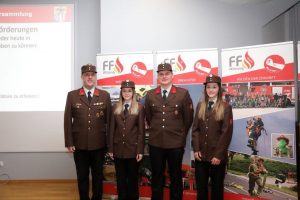 Zum Oberfeuerwehrmann: De Martin Gerald, Erlacher Michael, Schaffner Stefanie und Schwärzler Anna