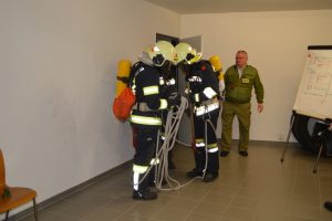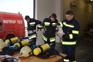 Dazu zählt die Vorbereitung der Geräte, die Einsatzkurzprüfung und das richtiges Aufnehmen der Schutzausrüstung ( inkl. der Schutzjacke) und des Atemschutzgerätes.