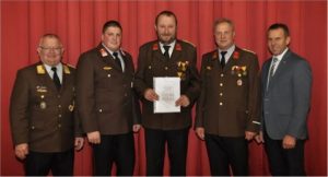 Nachdem Tagesordnungspunkt Ehrungen übernahm der Bürgermeister Rudolf Raffelsberger den Vorsitz der Jahreshauptversammlung und leitete die Wahl der Kommandofunktionen für die Periode 2018-2023. Als neue Funktionäre gingen aus der Wahl hervor: