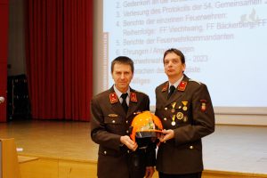 Im Anschluss an die Wahl gaben die neu gewählten Funktionäre eine kurze Laudatio zur durchgeführten Wahl. Die Wachablöse bei der Feuerwehr Viechtwang wurde symbolisch mit der Übergabe des Kommandantenhelms von HBI Paul Länglacher an seinen Stellvertreter OBI Roland Fröch durchgeführt. Auch bei der Feuerwehr Bäckerberg gab es eine Ablöse in der Führung – HBI Alois Raffelsberger übergab die Kommandantenfunktion an seinen Sohn HBM Andreas Raffelsberger.
