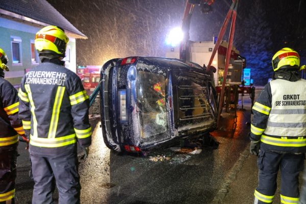 Zwei Verletzte forderte Samstagabend ein Autoüberschlag im Ortszentrum von Ottnang am Hausruck im Bezirk Vöcklabruck.