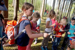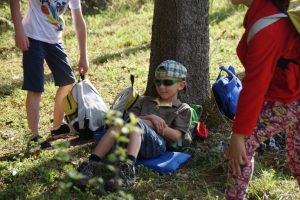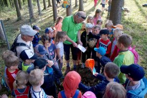 Bei einer Station durften sie dann unter fachmännischer Anleitung Stöcke mit Taschenmesser von der Rinde befreien und auch eine Steinschleuder ausprobieren. Ziel war ein Kochtopf auf einem Stock gehängt. So verbrachten die Kinder 2 tolle Unterrichtseinheiten im Freien und im Wald, bekamen die Natur erklärt und am Ende jeder ein kleinen Geschenk für zu Hause.