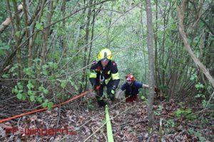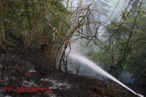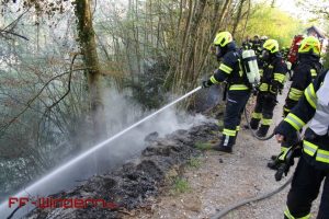 Aufgrund des unwegsamen und steilen Geländes wurde gleich nach der Lageerkundung die Höhenrettung Vöcklabruck nachalarmiert. Der Brand konnte durch, am Seil gesicherte Atemschutzträger, in der Böschung bekämpft werden. Später wurden noch die Glutnester mittels Wärmebildkamera lokalisiert und der Hang von unten nach oben mit der Hochdruckleitung gelöscht.