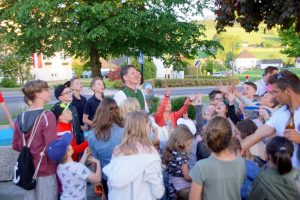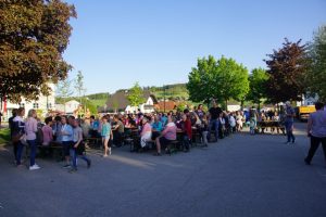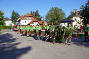 Ein ganz wichtiger Mann war auch Bürgermeister Fritz Steindl, der vom nahen Gasthaus einige Doppelliter Gerstensaft für die Maibaumaufsteller und Musiker heranschaffte. Aber auch die kleinen Gschwandtner wurden am Ende der Veranstaltung mit Zuckerl durch Bgm. Steindl belohnt. Auch dies ist schon Tradition in der Gemeinde Gschwandt.