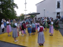 Turnerische Einlagen der Mädchen, Sprünge über den Maibaum leiteten die Schwerarbeit des Aufstellens ein. Vor einer außerordentlich großen Anzahl von Beobachtern, wurde der Maibaum aufgestellt. Anschließend wurde bei frühlingshaften Wetter auf dem Tanzboden getanzt und auf der Terrasse der Abend bei bester Verköstigung genossen.