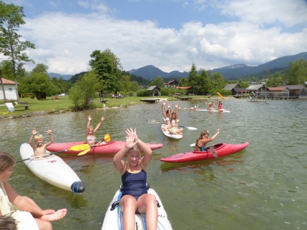 Wie in den vergangenen Jahren, veranstaltete die ÖWR Bad Goisern auch heuer wieder ein Jugendzeltlager. Das Neue beim diesjährigen Camp, war die Anwesenheit von Mitgliedern des ÖJRKs. Man traf sich am Freitagnachmittag im Strandbad Untersee bei der ÖWR Hütte, wo man zunächst das Gelände auf das Lager auf Vordermann brachte, Fahnen aufhängte und die Zelte aufstellte. Die Kinder und Jugendlichen trotzten den doch recht kühlen Temperaturen und paddelten mit Surfbrettern und Kajaks um die Wette. Wenn auch sicherlich niemand bei einer Wassertemperatur von unter 13°C zunächst freiwillig ins Wasser wollte, war das nach dem ersten Sturz vom Surfbrett kein großes Thema mehr. Beendet wurde der Tag mit einer schönen Nacht- bzw. Dämmerungsfahrt mit dem Einsatzboot. Für so manch eine/n war dies die erste Fahrt mit einem Motorboot überhaupt.