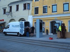 Last but not least: Am Rathausplatz wurden beidseitig an den Haltestellen die Stelen für das Fahrgastinformationssystem errichtet.