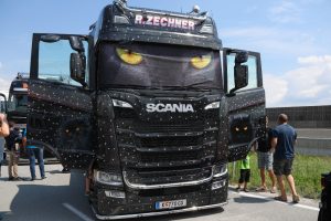 „Wir haben das Truck Event Austria heute zum dritten Mal hier in Vorchdorf bei der Firma Eurowheel. Wir wissen zwar noch nicht wieviele PS wir am Platz stehen haben, aber wir wissen, dass wir in etwa 400 Showtrucks vor Ort haben und in etwa 10.000 Besucherinnen und Besucher. Das Truck Event Austria ist zu Stande gekommen, weil der Chef von Lettner Trans, Eurowheel und ich beisammengesessen sind und haben gesagt: „Jetzt machen wir ein Truckertreffen, wo auch richtig was los ist“. Meiner Ansicht nach wird der Druck der osteuropäischen Frächter wird in Westeuropa immer höher, dadurch wird auch der Zusammenhalt unter den Truckern immer größer, das spiegelt sich bei den Truckevents, wo die Fahrer zusammenkommen und ein lässiges Wochenende gemeinsam verbringen,“ berichtet Thorsten Aspetzberger, Veranstalter des Truck Event Austria.