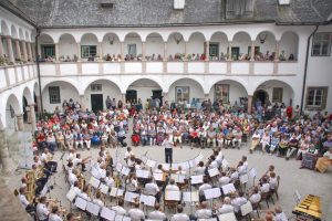 Ein Konzert der Superlative erlebten die in Scharen gekommenen Besucher am Mittwoch, 4.7.2018 mit der Polizeimusik OÖ im Zuge der Schlosskonzerte 2018 im Seeschloss Ort. „Das Seeschloss Ort ist an diesem Abend wohl der sicherste Ort Oberösterreichs!“, so die Begrüßungsworte von Gottfried Schrabacher, Wirtschaftsstadtrat von Gmunden. Gemeint war der große Klangkörper der Polizeimusik mit mehr als 50 Musiker/innen, die das Publikum begeisterte.